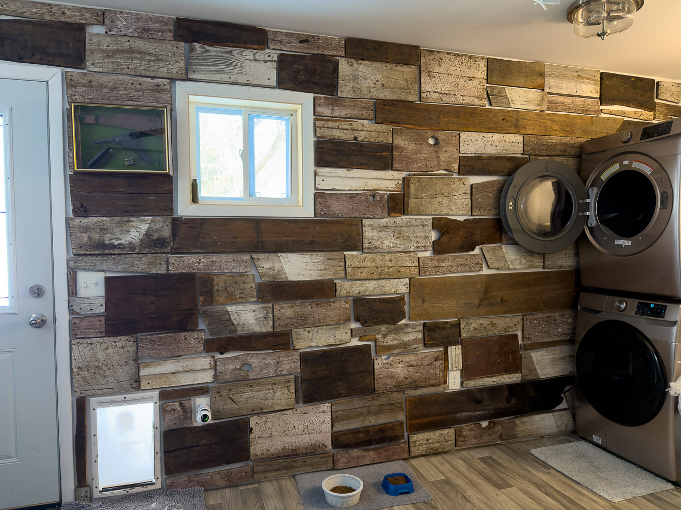 The interior of the back-most wall of the house, part of an addition built a few years ago, is decorated with salvaged roof boards that were removed during renovation (2nd photo below). Perhaps those boards came from Buckingham Mill?