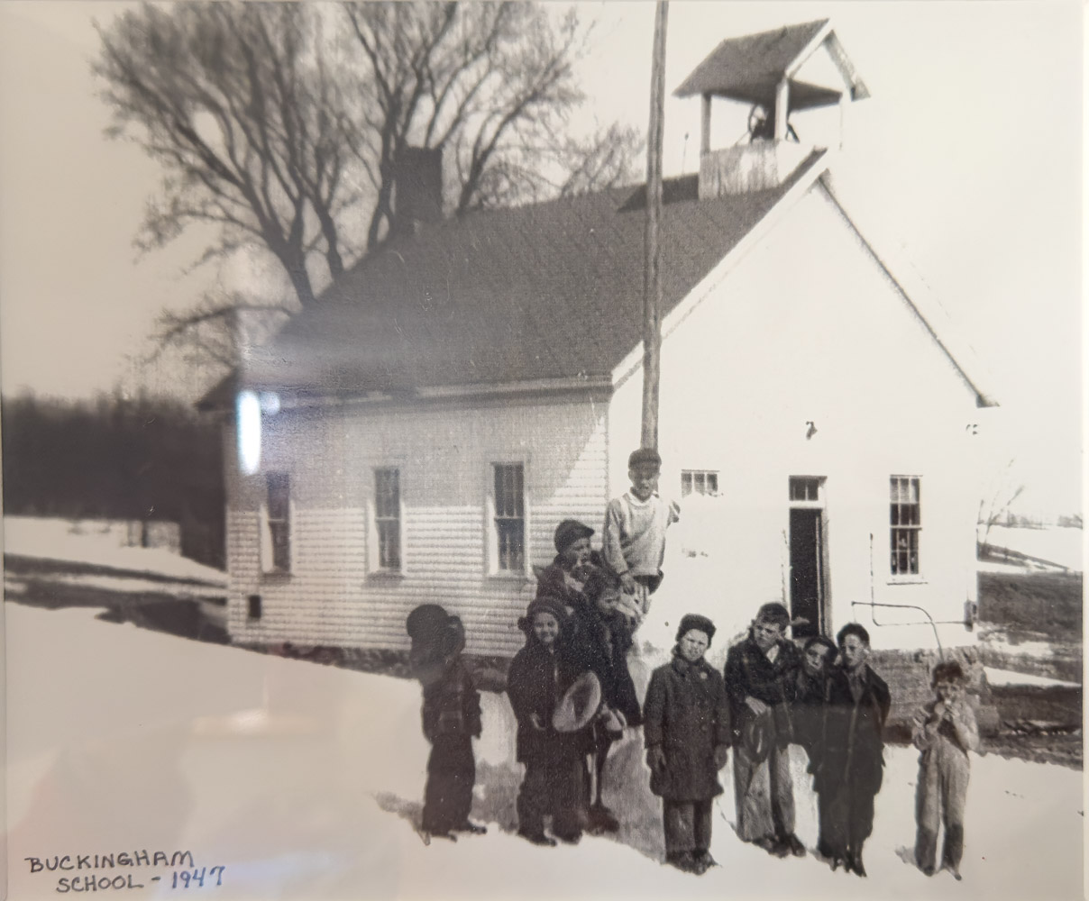 Attica School, it's original name, was built as a log cabin building in 1882, either just east of the present building or at the corner of Bray and Newark. It burned down, and a replacement schoolhouse was built around 1900, on land loaned to the school by the White family, using wood donated by the nearby Buckingham Mill, and was therefore renamed Buckingham School.