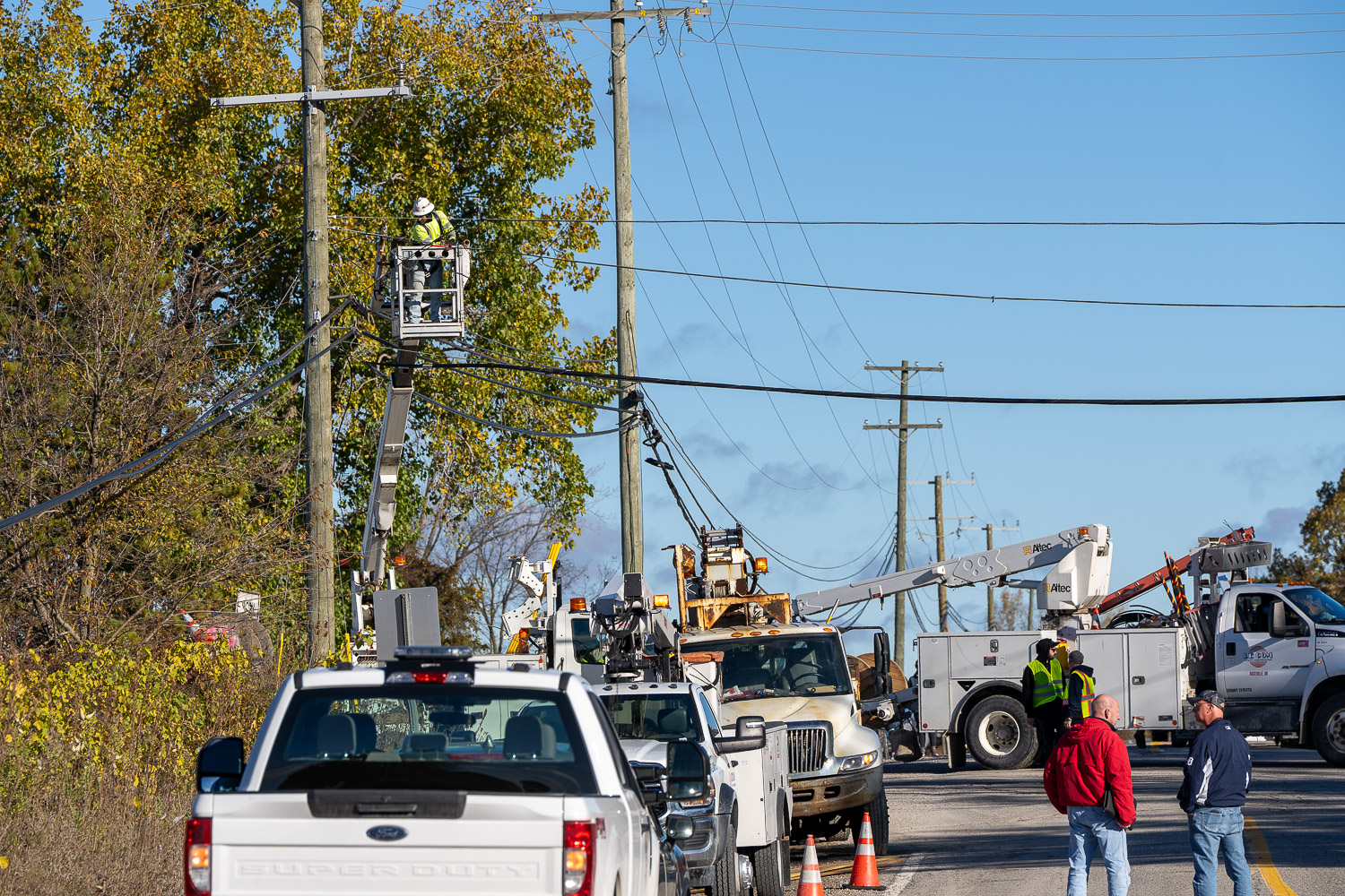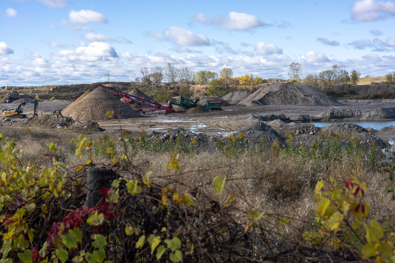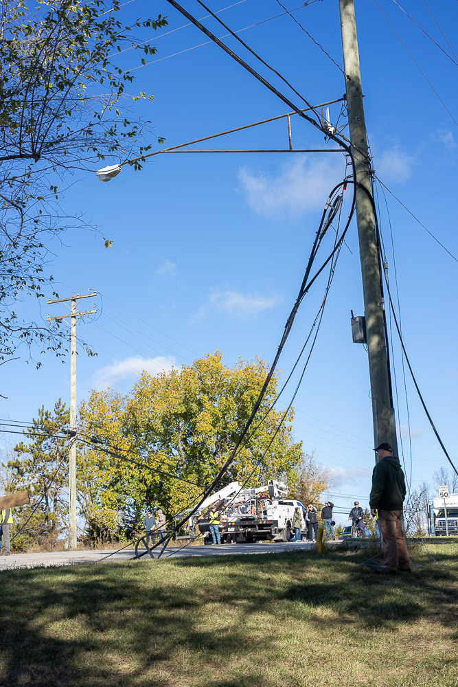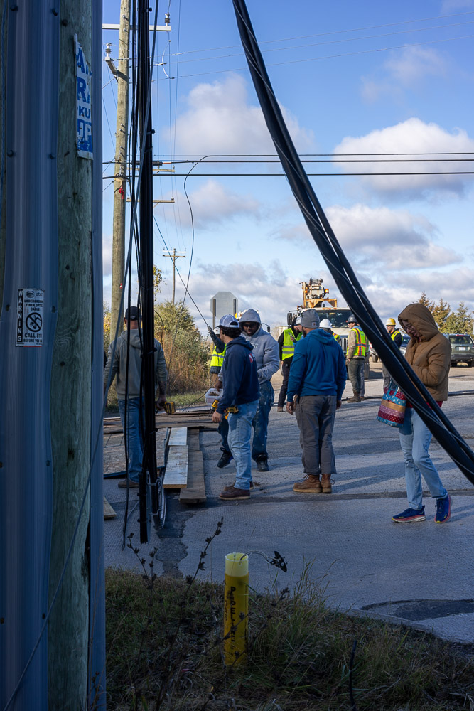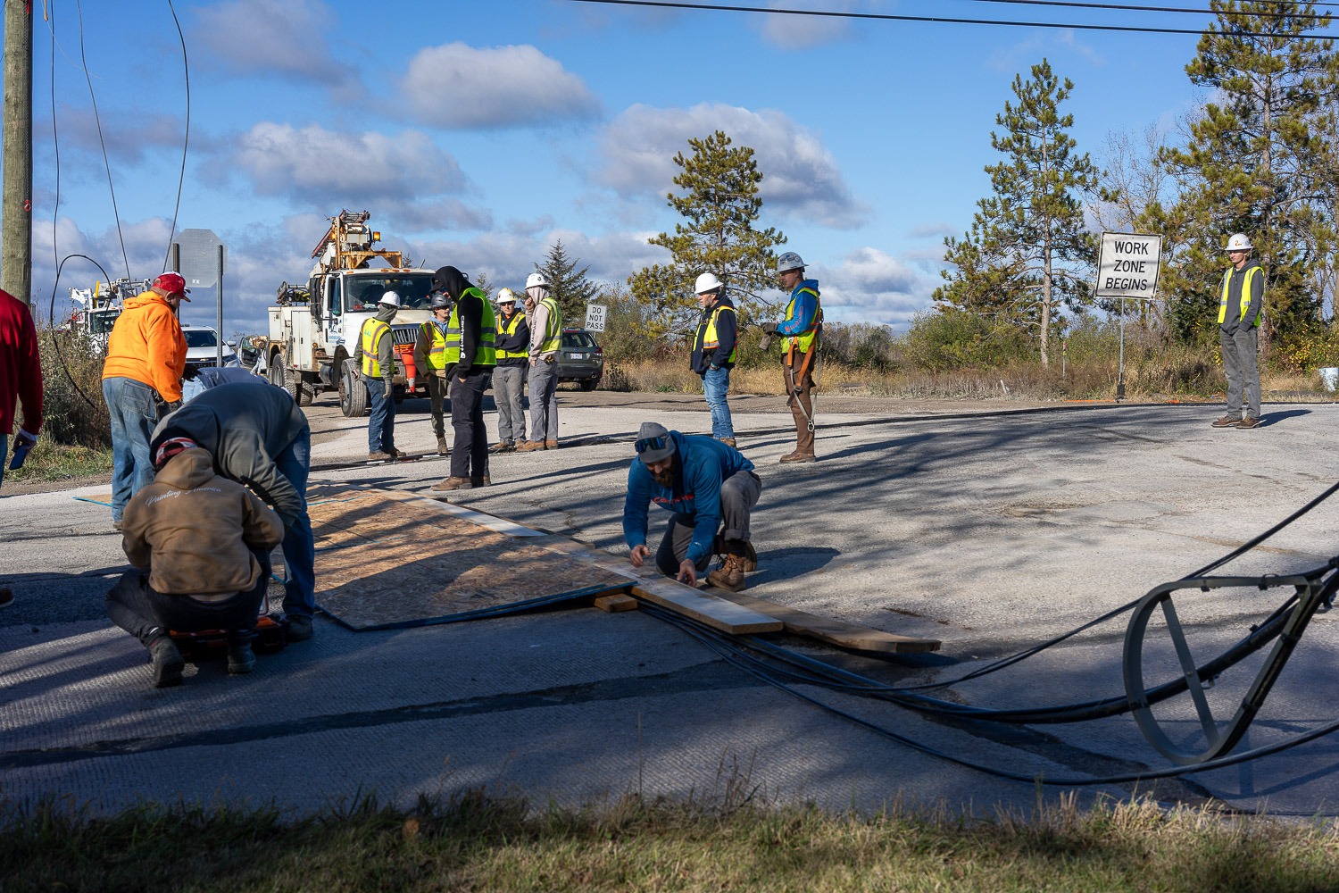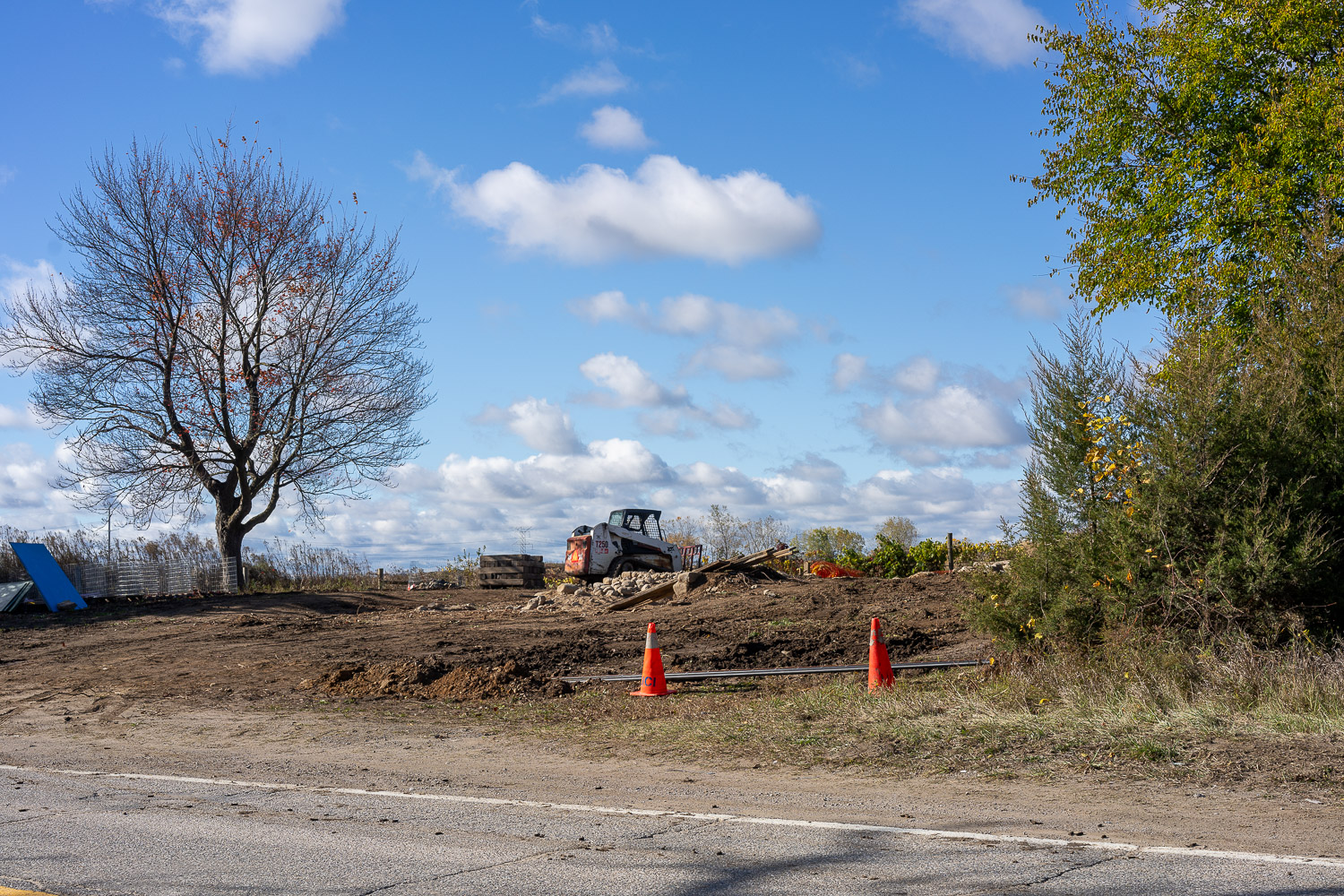 Location: Originally at 42.78505, -83.05854, on the west side of Mound Road, just south of 31 Mile Road, at 66885 Mound Rd, Washington, MI, moved 1/2 mile on October 24, 2025 to the new Thorington Park at 42.78504,-83.05202Thorington Schoolhouse was built before 1859, and was in use until the 1954-1955 school year. The school was annexed to Romeo Community Schools around 1955. It is a rectangular wood-frame schoolhouse. The schoolhouse was built to the standards of a Michigan one-room schoolhouse, with 3 large windows on each side to let in daylight sufficient for the students to easily see their work. A pot-bellied stove was in the center of the room to provide heat during the cold Michigan winters. A single centered door is in the front of the building, with a transom window above it to let light into the foyer, and a large window on either side. The windows have triangular pediments above them. The door has a simple flat pediment above it which is falling apart. The school was once considered worthy of some investment since it has a metal roof, but that roof has decayed to the point where it doesn't really protect the schoolhouse any more. There is a bell tower, without any school bell inside. No school identification sign exists any more. The back of the schoolhouse has no windows or doors. The school looks quite similar to Brownsville School No 1, near the southwest corner of Michigan; maybe they were built from the same plans? Some views of the interior of this schoolhouse, circa 2015-2016, are shown below: Gravel Pits now scrape the land behind the schoolhouse, as shown in this 2016 photograph behind the schoolhouse: The Thorington Settlement is the oldest settlement in Washington Township, Macomb County, Michigan. It is identified as the ghost town of Thoringtonville on Google Maps as of June 2021 but nothing is there except the schoolhouse, a few old farmhouses, and some new housing developments. James Thorington (born 1766, died Jan 17 1836) was the first settler to this area, arriving in 1819, 18 years before Michigan would become a state. He is buried in Brabb Cemetary, on 31 Mile Rd just east of Mound Road, very close to the schoolhouse, and his tombstone still stands, evidenced by the first photo below. The Brabb Cemetary, whose entrance is shown in the second photo below, honors another of the early prominent families in the neighborhood, and their house named the Brabb House on Van Dyke Avenue in Romeo, shown in the 3rd photo below, is the venue in which my wife and I were married. Thorington Schoolhouse on the Move, 2025 During 2025, Washington Township announced they have bought the Thorington Schoolhouse and will move it to a new park nearby on 31 Mile Rd and use high-school craftsmen students to restore it. This is a wonderful announcement, potentially saving this schoolhouse from the ravages of nature. They cleared away the vegetation near the schoolhouse in preparation for the move, and I took the two photos below of the cleared-away schoolhouse during April of 2025. As of July 30, 2025, the date of the move is still to be determined. Much work was done on the schoolhouse to prepare it for it's move. I visited on October 6, 2025, and the bell tower had been removed, the metal roof had been removed, the rafters and roof had been repaired/rebuilt, many rotting studs and boards had been replaced, the foundation had been removed, and the schoolhouse had been placed on a custom-made trailer for the move. Note in the first two photos below, taken from across the street, electrical wires are present which will be in the way of the move. In my photos at the top of the page, I had removed the wires in post-processing, or had taken the photo near enough to the schoolhouse to put the wires behind me. The move was scheduled for October 22, 2025, but rain delayed it until October 24th. Sunrise was at 7:57 AM, so shadows were still long when I arrived at the scene at 8:50 AM and took my first photo, the 1st photo below. A closer view from the same angle is in the 2nd photo below. Notice that the wires are down. Actually, they're temporarily buried and covered with plywood where the truck and schoolhouse will drive over them, as shown in the 3rd photo below. They'll be re-hung from the telephone poles after the move. The right side of the schoolhouse is shown in the 1st and 2nd photos below, and the ceremony/speeches before the schoolhouse move began in earnest is shown in the 3rd photo below. The guy talking, under the left-front window in that 3rd photo is Washington Township Supervisor, Sebastian Sam Previti. The final roadblocks to getting the move underway were the overhead electrical wires over Mound Road on the south side of 31 Mile Road, and the wires over 31 Mile Road on the east side of Mound Road. We all waited while DTE spent a long time moving those wires temporarily to allow the schoolhouse to pass. The 1st photo below shows DTE starting to lower the wires over Mound Road, the 2nd shows the wires down, and the 3rd and 4th photos show the boards which were put in place to cover the wires and prevent damage when the truck and schoolhouse drove over them. So that was enough to get the schoolhouse moving onto Mound Road, heading north, even if the wires around the corner on 31 Mile Road weren't yet out of the way. Approaching 31 Mile Road on Mound Road... They had to take it very slow and check in the 3rd photo below that they were safely crossing over the electric wires. After a short delay at the intersection, DTE had disconnected the wires crossing 31 Mile Road from one of the poles, and used two cherry-pickers to lift the line up higher than the top of the approaching schoolhouse. Once the turn onto 31 Mile Road was complete, I was down in the ditch and snapped a photo of the underside of the schoolhouse, and then one of the cigar-wielding driver of the truck. By then I had left my wife for 2 hours and I thought it was time to go back home, so I watched the schoolhou